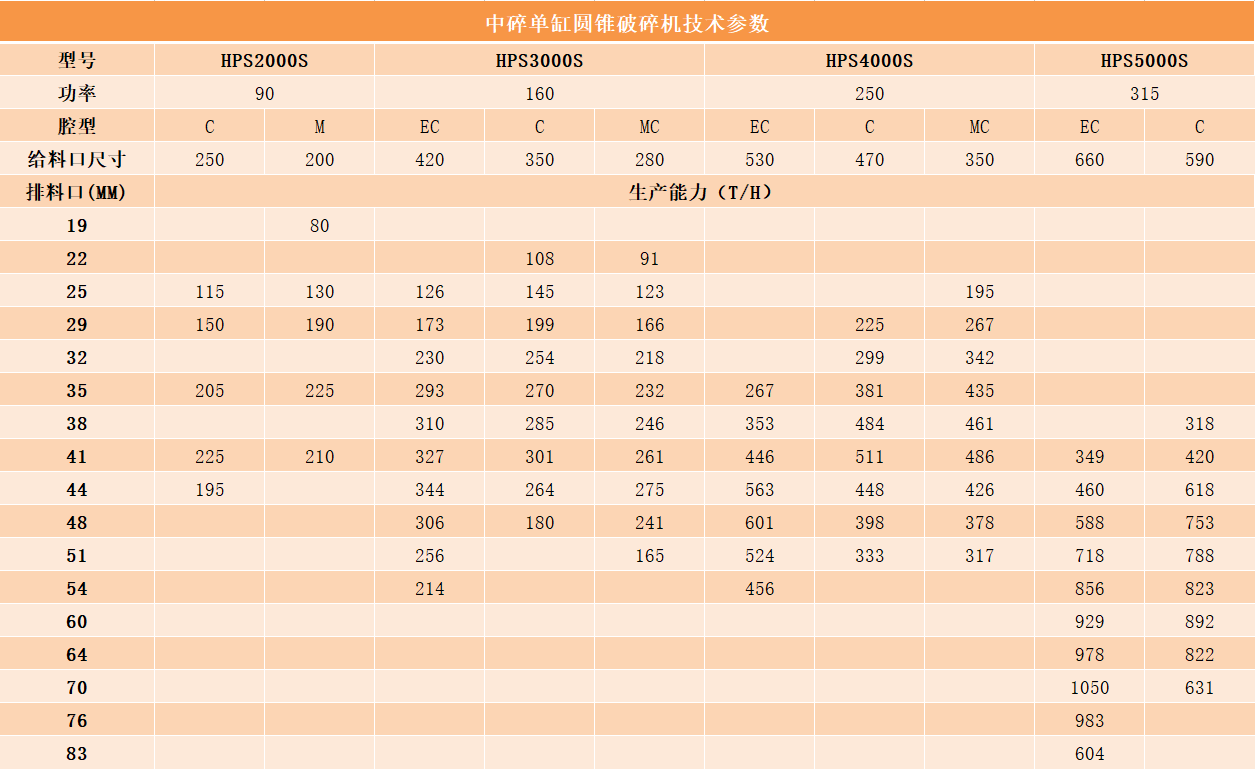 HPS系列單缸圓錐破碎機具有10余種破碎腔型變化及多種可供選擇的偏心距,使設備的靈活性和適應性大大增強。同時同一臺圓錐式破碎機如果能夠正確的選擇或更換破碎腔型或偏心距,那么通過調整還可使其用于生產過程中的第二段、第三段或第四段等不同階段的破碎,以對不同粒級產品的要求。該系列破碎設備還具有沖程可調節功能,使其可以輕松地對破碎機物料的通過量進行調整,實現與生產線上的其他破碎設備協調運轉,更大限度成品粒度改變時達到產量更大化要求,單缸圓錐破碎機的填料和不填料的襯板安裝方式,可以根據用戶需求靈活選擇